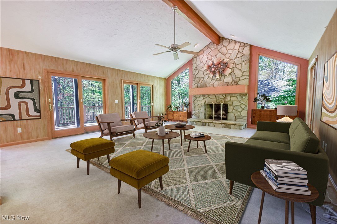 Statement stone fireplace as living room focal point