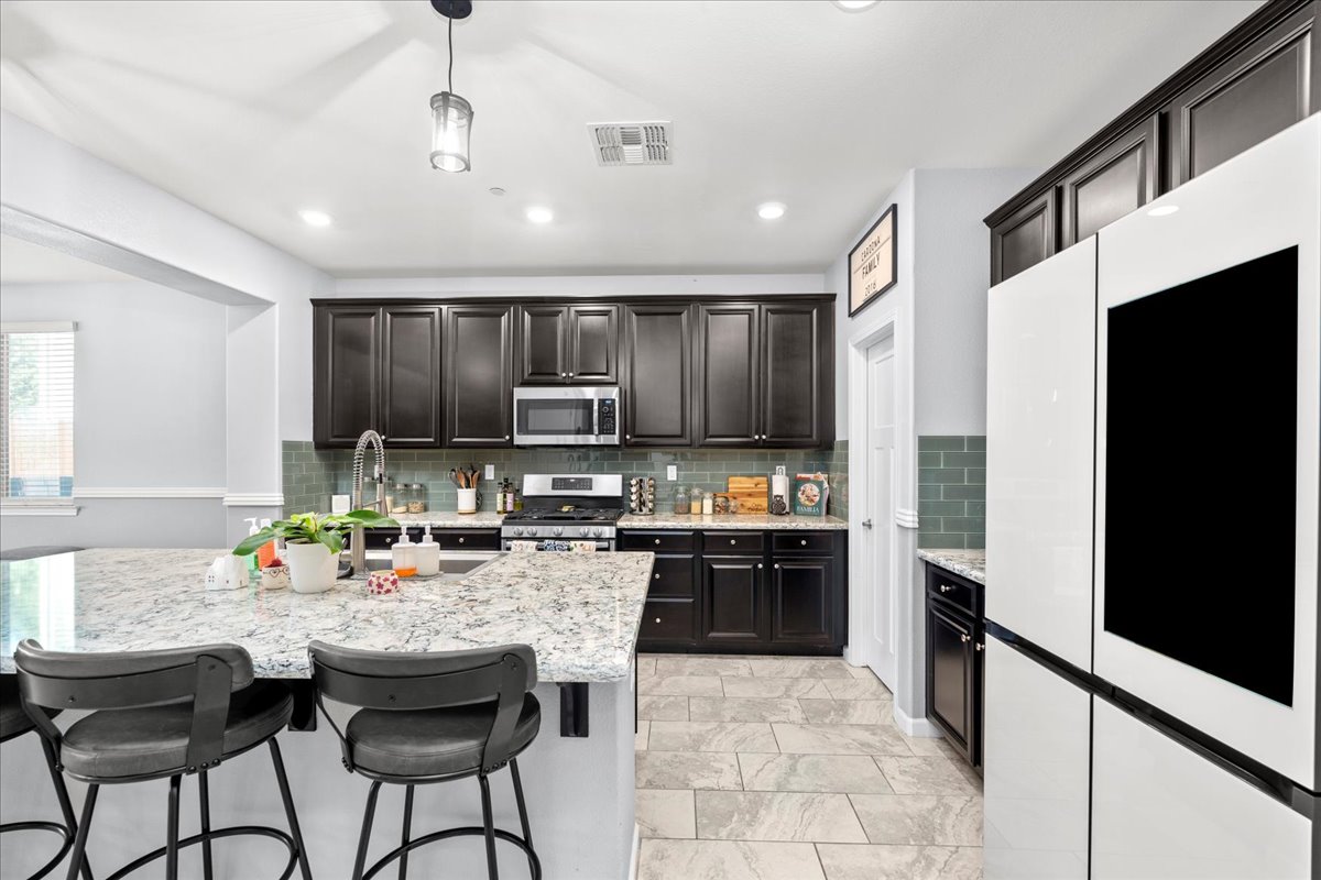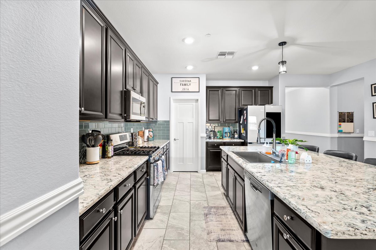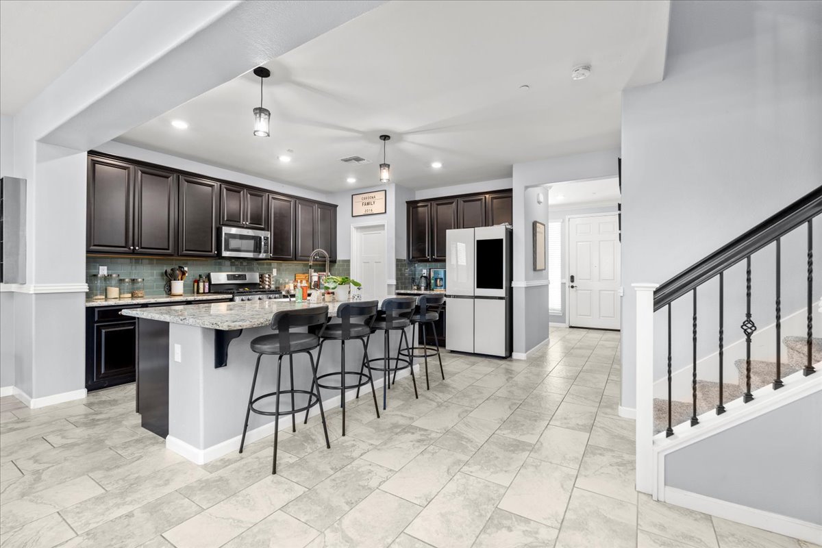 Welcome to this stunning home located in the highly sought-after Somerset Ranch neighborhood! With 5 spacious bedrooms and a large open loft area, this home is perfect for families looking for room to grow, relax, and entertain. A full bedroom and bathroom are conveniently located downstairs, offering ideal flexibility for guests or multi-generational living. Located within the highly rated Folsom Cordova School District, this home combines comfort and convenience in a desirable community. The open-concept kitchen features upgraded countertops and a backsplash, creating a modern and inviting space for family gatherings and dinner parties. Upstairs, you'll find a large loft area perfect for a playroom, media space, or home office, along with a convenient laundry room for everyday ease. Step outside to enjoy the enclosed backyard patio with climate-controlled screens, offering year-round comfort for relaxing or entertaining. The garage boasts epoxy flooring and an EV connector, adding both style and functionality. Somerset Ranch also features walking trails, a scenic pond, open green spaces, and a playground, providing plenty of opportunities to enjoy the outdoors. This beautiful home truly has it all.