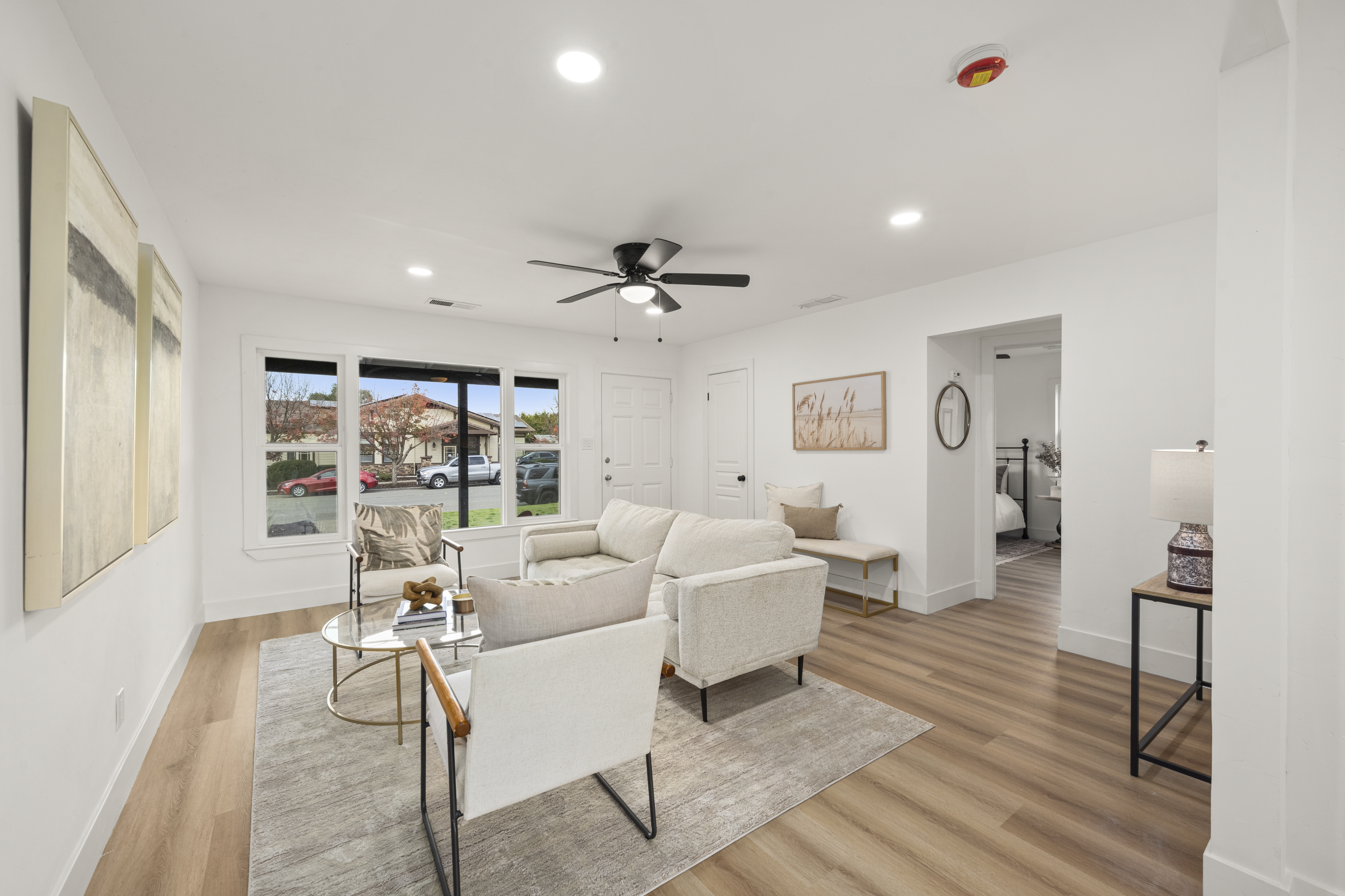 Discover downtown Lincoln living at its finest! This tastefully remodeled 4-bedroom, 2-bath home offers approx. 1,800 sq ft of modern living and an incredibly flexible floor plan. Every detail has been thoughtfully upgraded, including a new roof, fresh stucco, fresh exterior and interior paint and new windows. A new electrical panel and new tankless water heater enhance both comfort and efficiency. Thoughtful upgrades include modern flooring, upgraded lighting, and a fully renovated kitchen showcasing updated appliances, sleek cabinetry, and contemporary finishes. Both bathrooms are beautifully redone, and the garage conversion provides a highly desirable private primary suite with en-suite bath, perfect for multi-generational living or a potential ADU with its own entrance. With B-P zoning, the property also offers rare flexibility for residential, professional, or mixed-use potential. Located in the heart of downtown Lincoln, this home places you moments from charming shops, dining, and community events and is walking distance to McBean Park, featuring 24 acres of amenities including a skate park, dog park, pool, sports fields, playground, and more. A truly move-in-ready, beautifully upgraded home in one of Lincoln's most convenient and sought-after locations!
