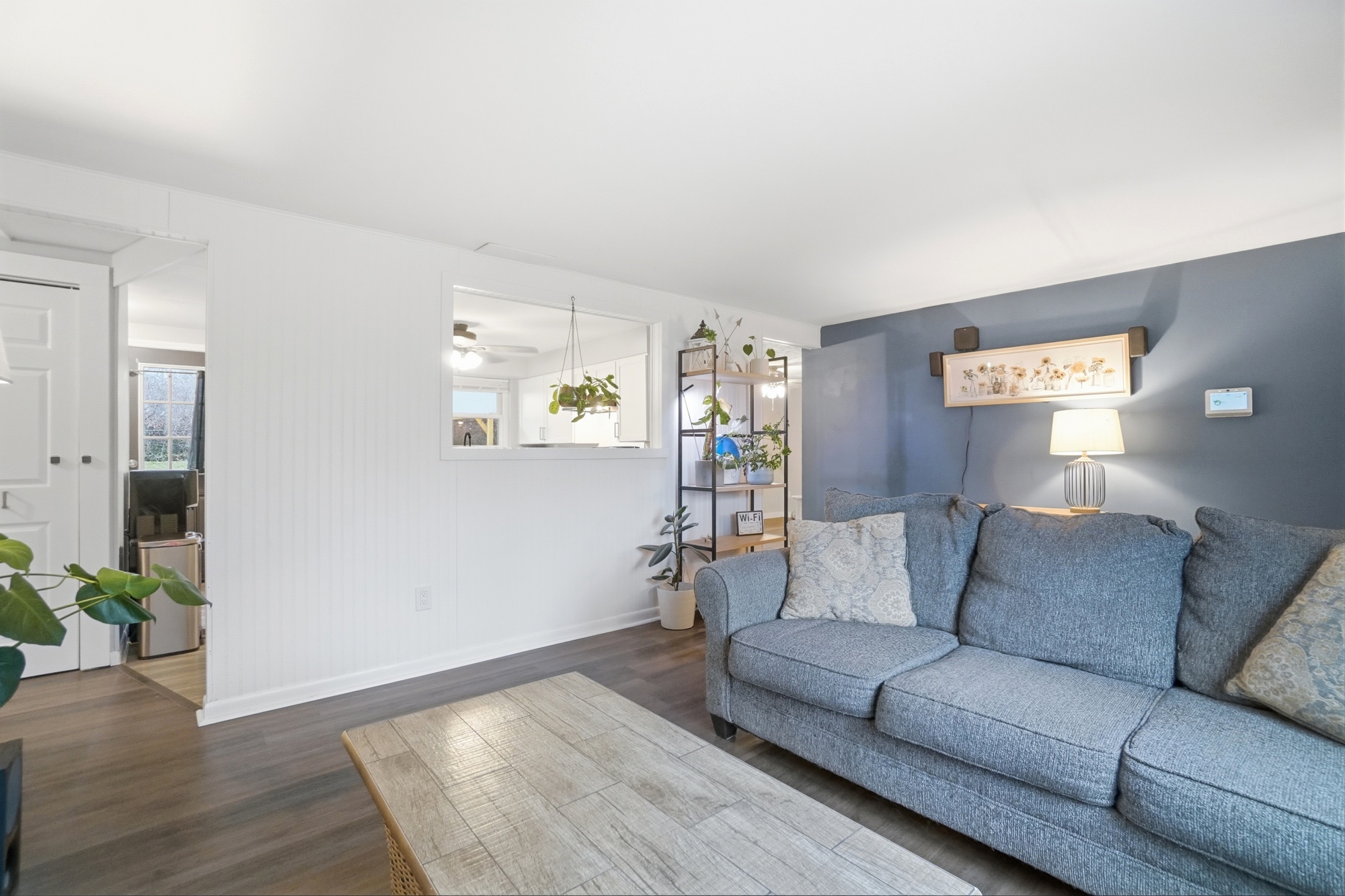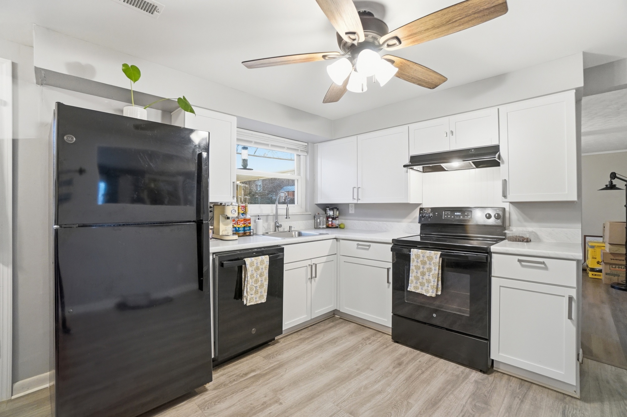 Enjoy a bright, open feel with durable laminate flooring that flows seamlessly throughout the home. The updated kitchen offers a clean, modern design with new cabinets and an eat-in layout ideal for everyday living.